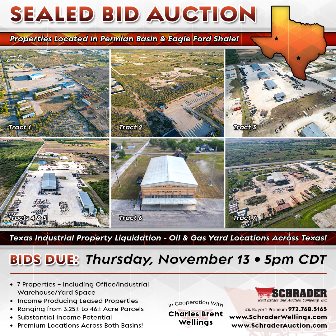 Auction Date: 11/13/2025 5:00pm County: Atascosa, Dewitt & Ward Counties City/State: Texas Status: AUCTION IS OVER